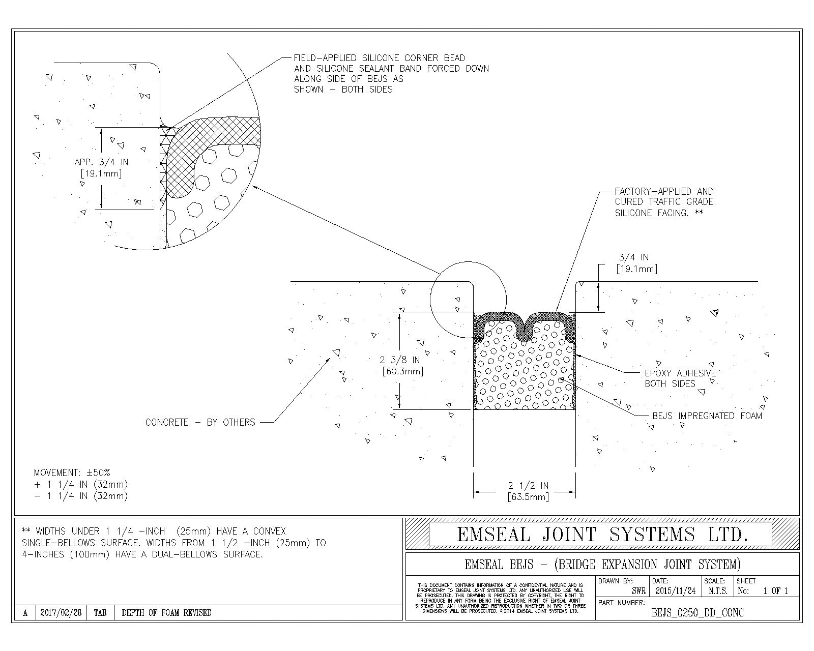 BEJS_0250_DD_CONC BEJS Bridge Expansion Joint System Deck-to-Deck in Concrete