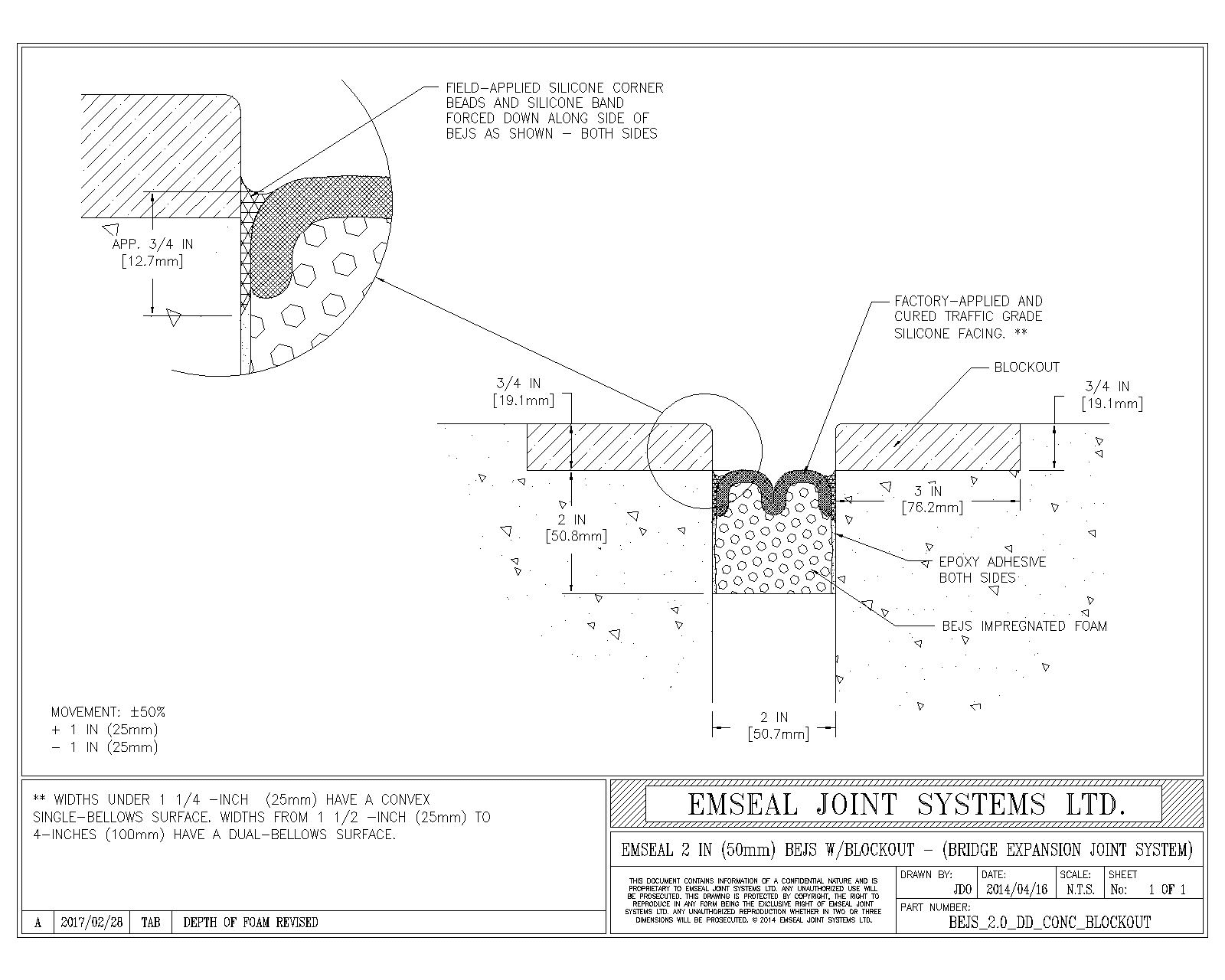BEJS_2.0_DD_CONC_BLOCKOUT BEJS Bridge Expansion Joint System Deck-to-Deck in Blockout