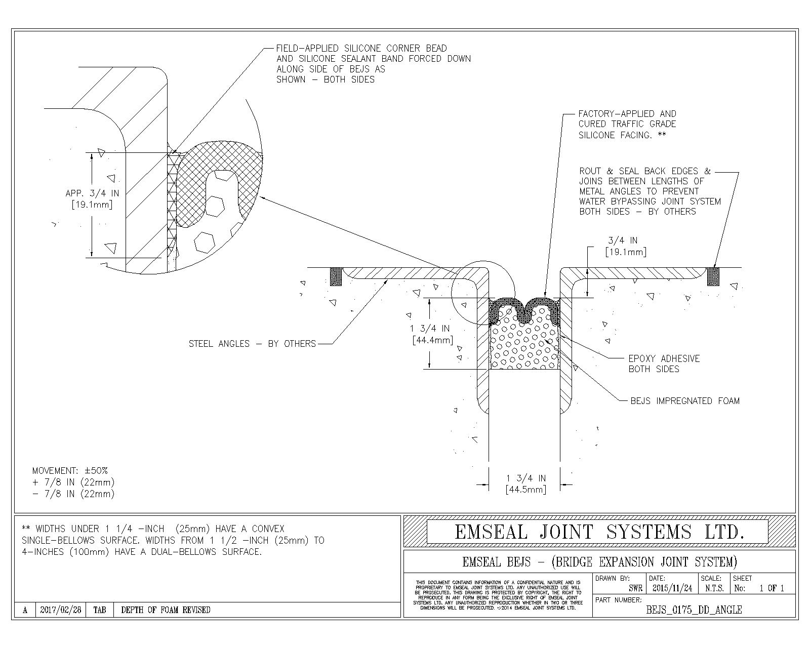 BEJS_0175_DD_ANGLE BEJS Bridge Expansion Joint System Deck-to-Deck in Metal Angles