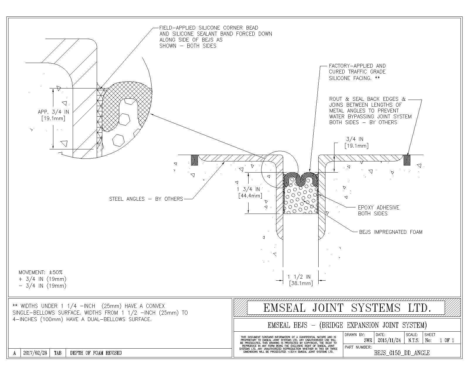 BEJS_0150_DD_ANGLE BEJS Bridge Expansion Joint System Deck-to-Deck in Metal Angles