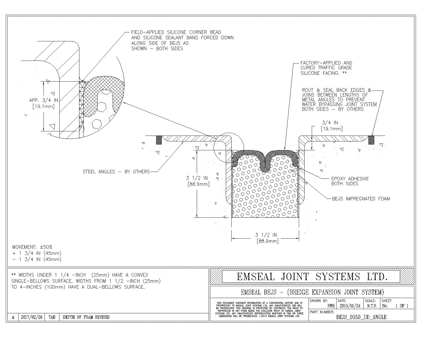 BEJS_0350_DD_ANGLE BEJS Bridge Expansion Joint System Deck-to-Deck in Metal Angles