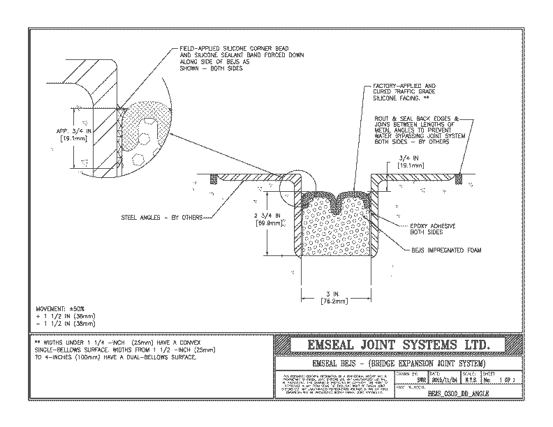 BEJS_0300_DD_ANGLE BEJS Bridge Expansion Joint System Deck-to-Deck in Metal Angles