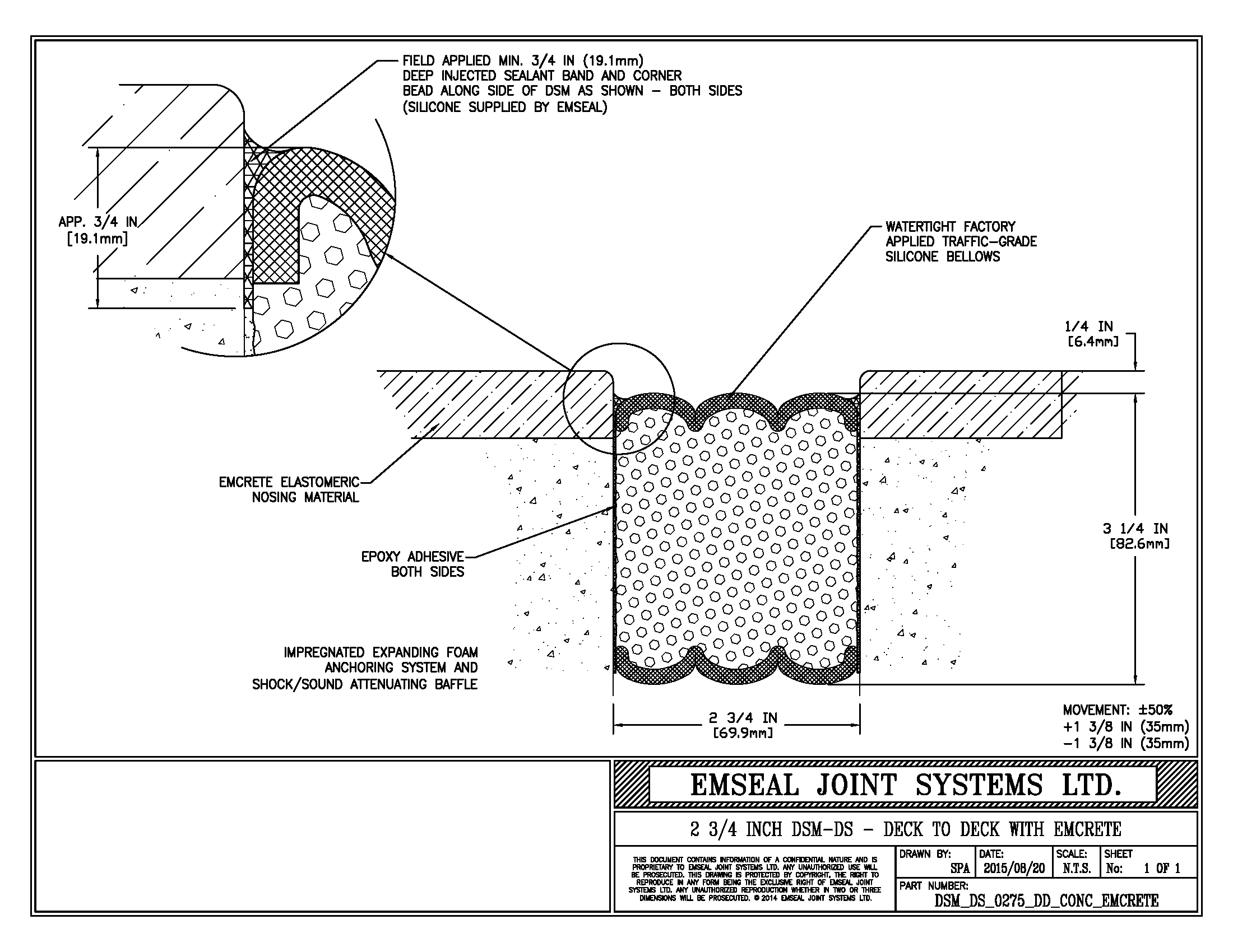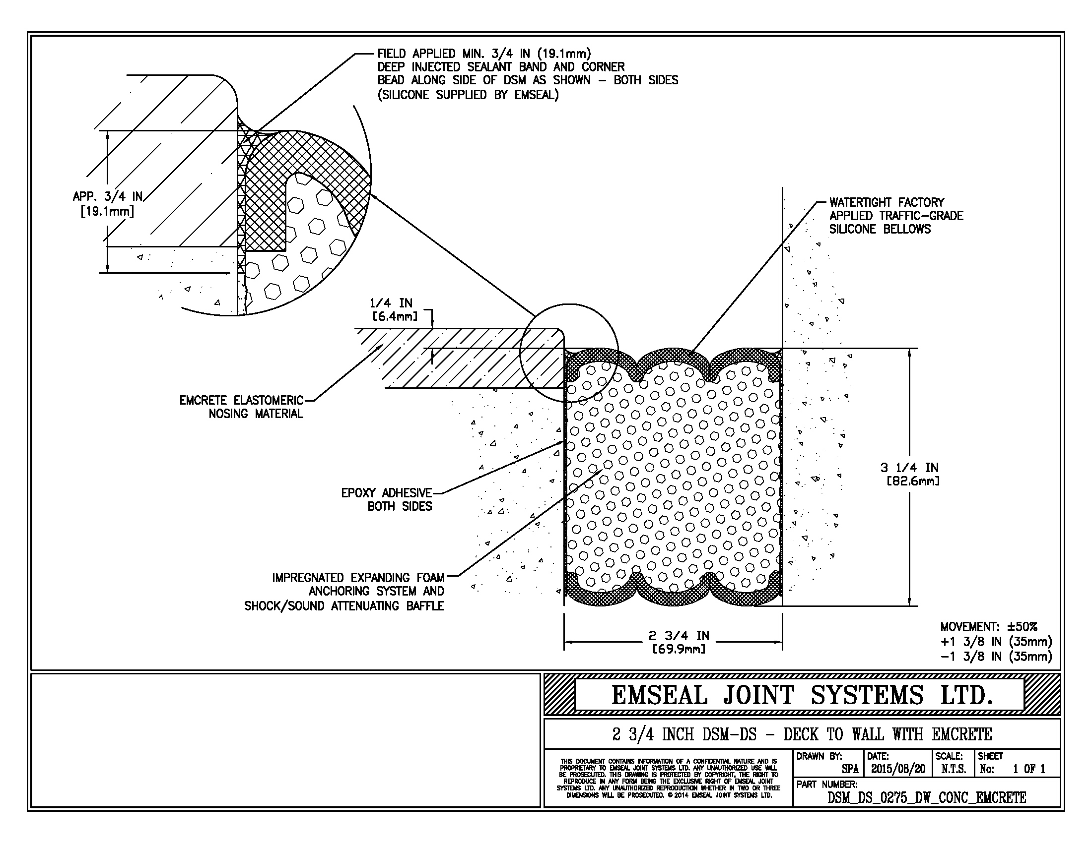 These drawings are intended for use during the specification of EMSEAL products in legitimate Architectural, Engineering and Construction applications. Any misuse or duplication of these copyrighted details for any other purpose, will be vigorously prosecuted.