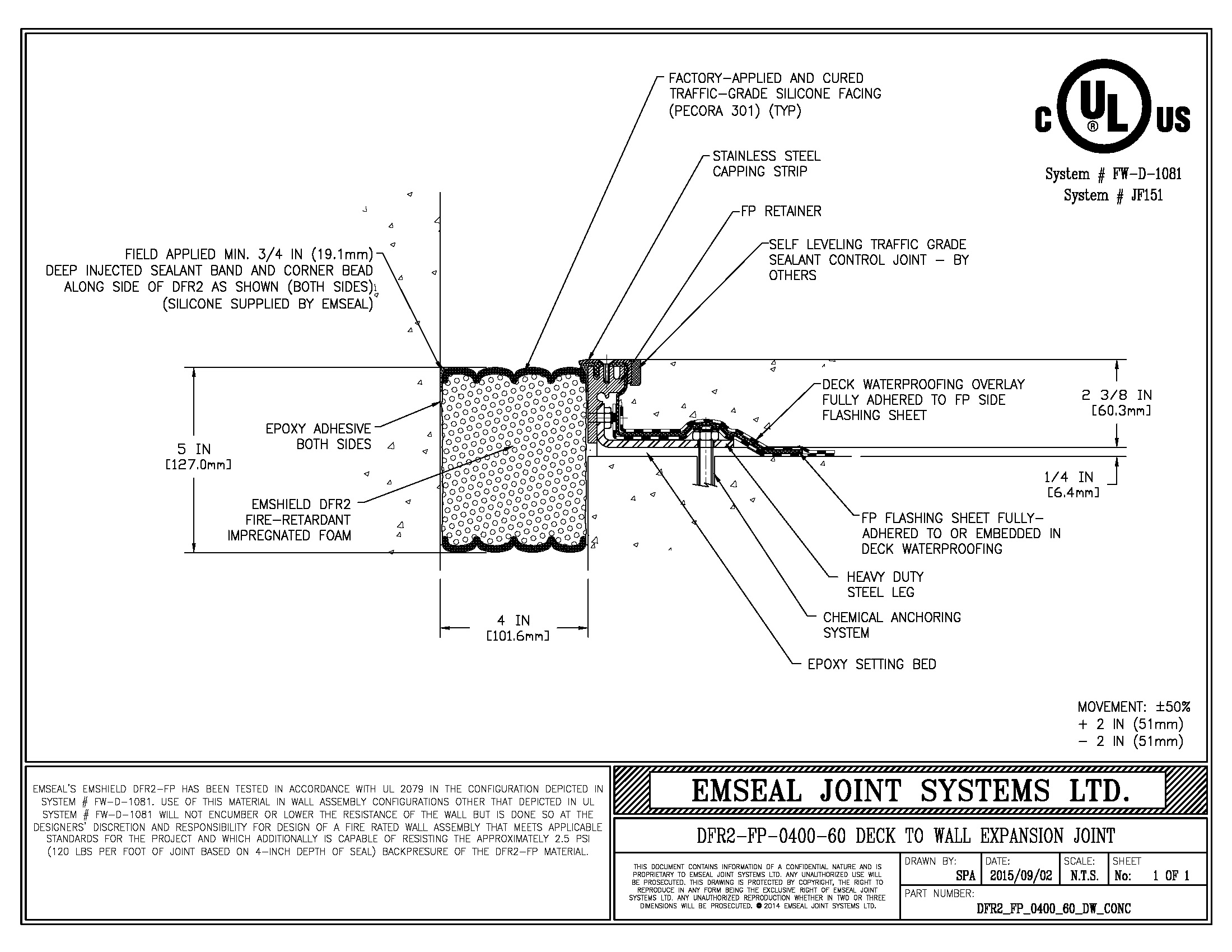 These drawings are intended for use during the specification of EMSEAL products in legitimate Architectural, Engineering and Construction applications. Any misuse or duplication of these copyrighted details for any other purpose, will be vigorously prosecuted.