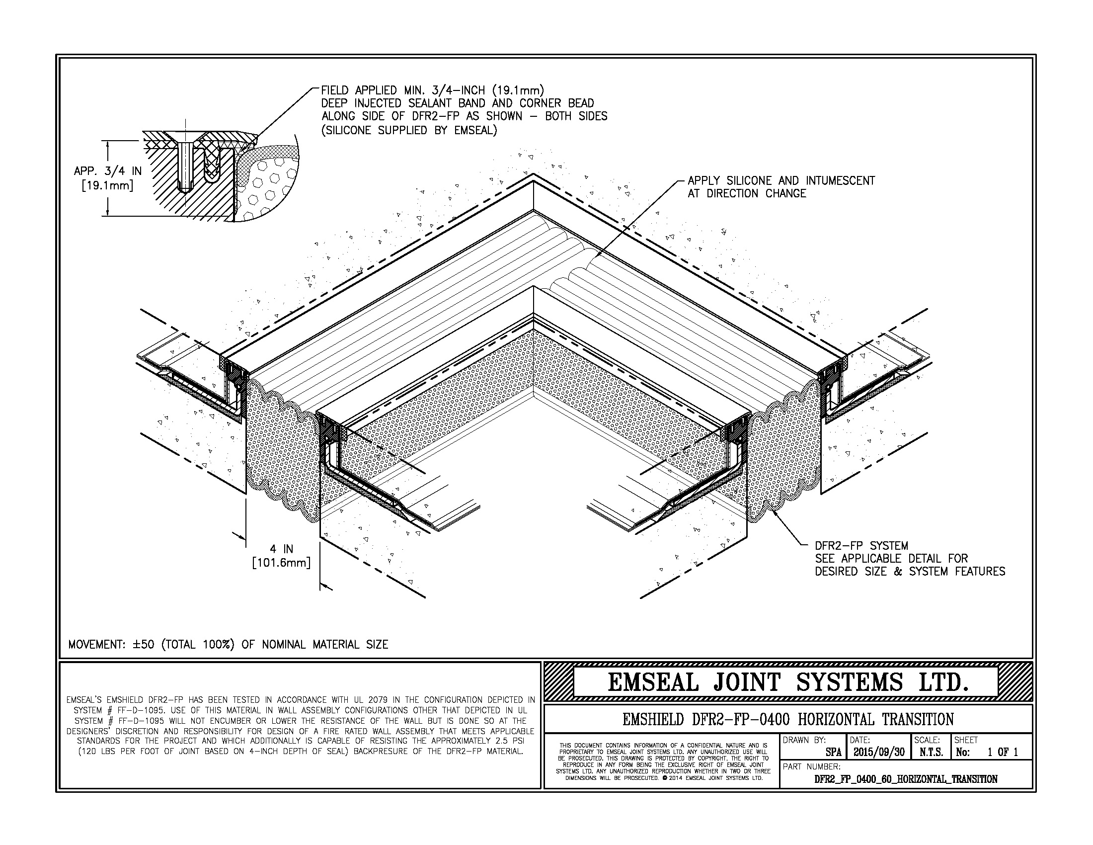 DFR-FP System 2-Hour Fire-Rated Filed Fabricated Horizontal Transition with 1 inch Leg Height 4 inch | 100mm