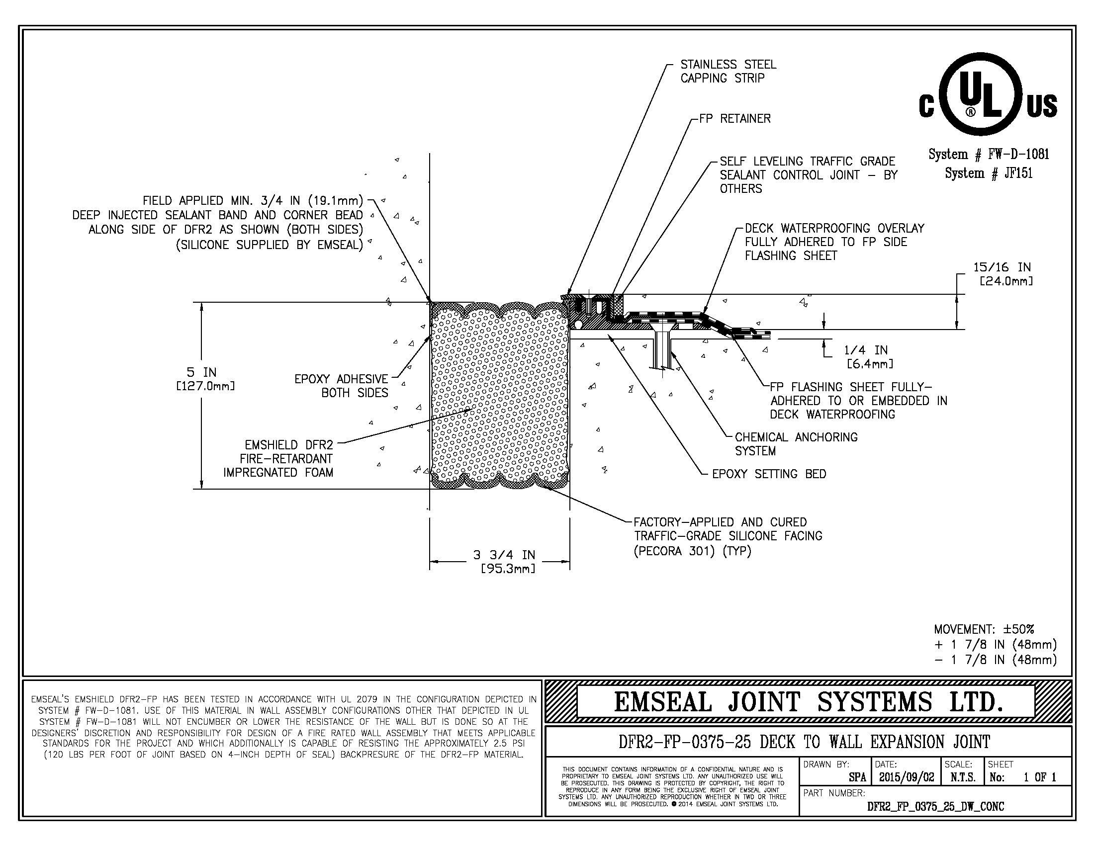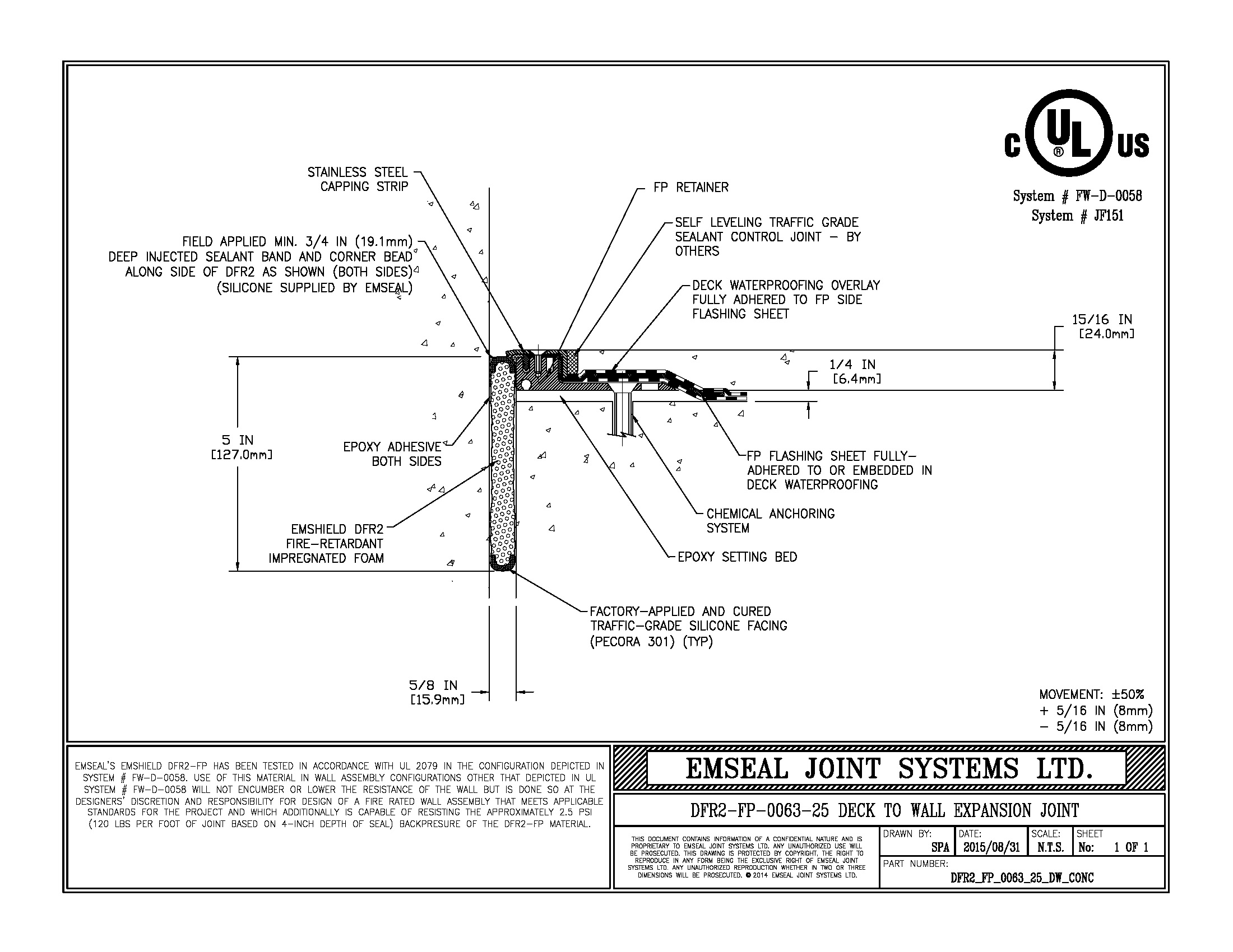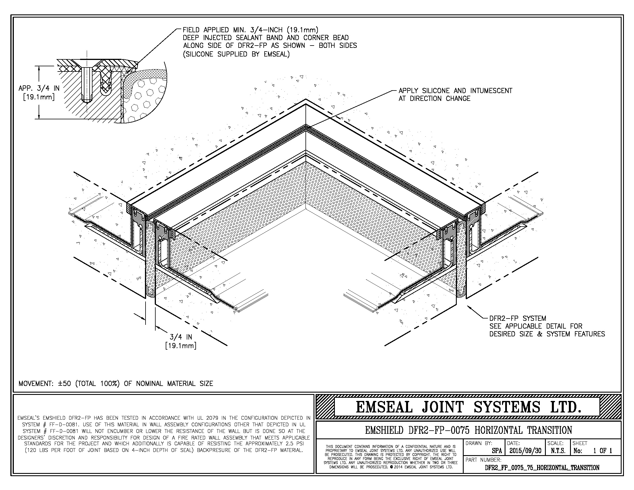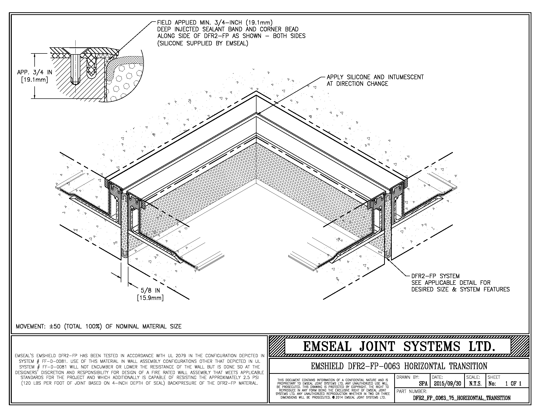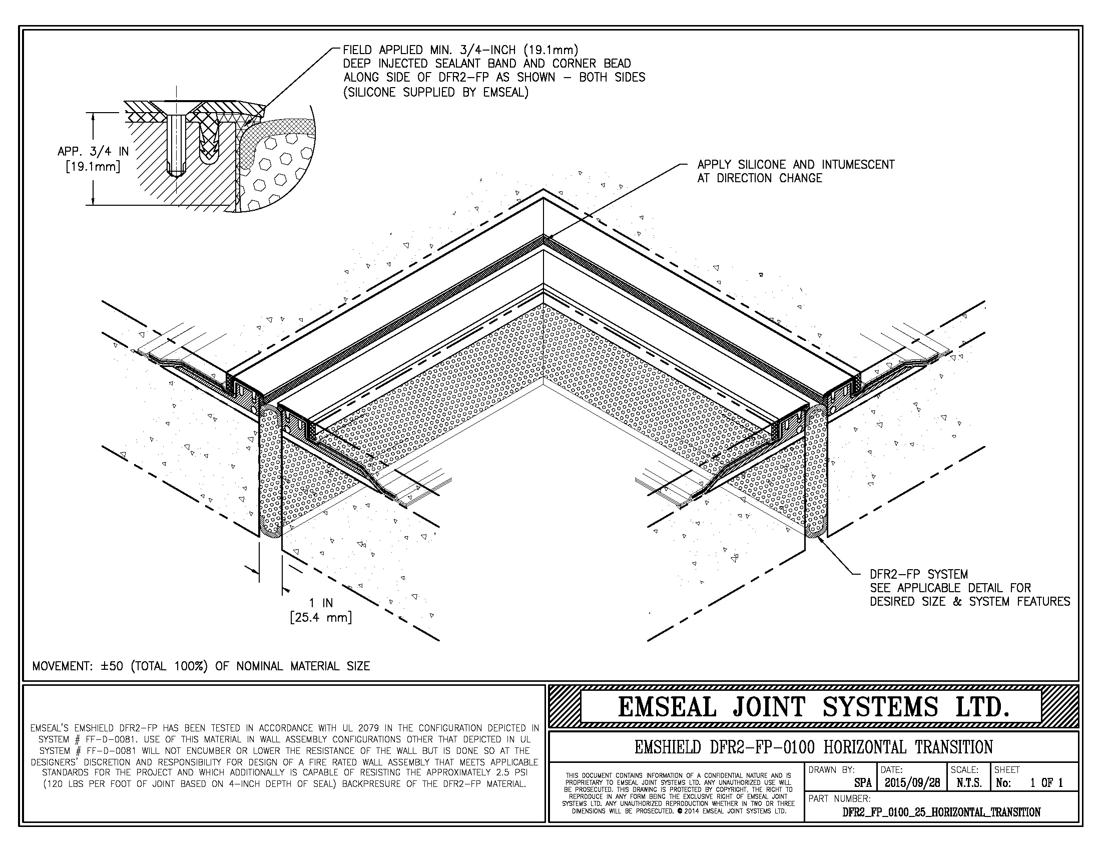 These drawings are intended for use during the specification of EMSEAL products in legitimate Architectural, Engineering and Construction applications. Any misuse or duplication of these copyrighted details for any other purpose, will be vigorously prosecuted.