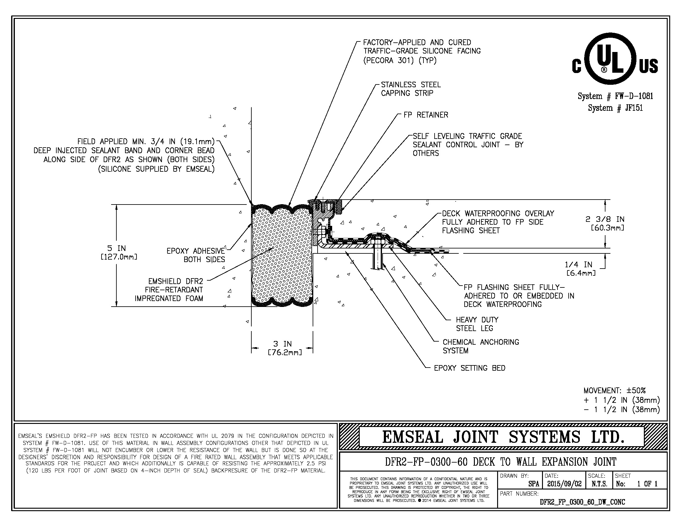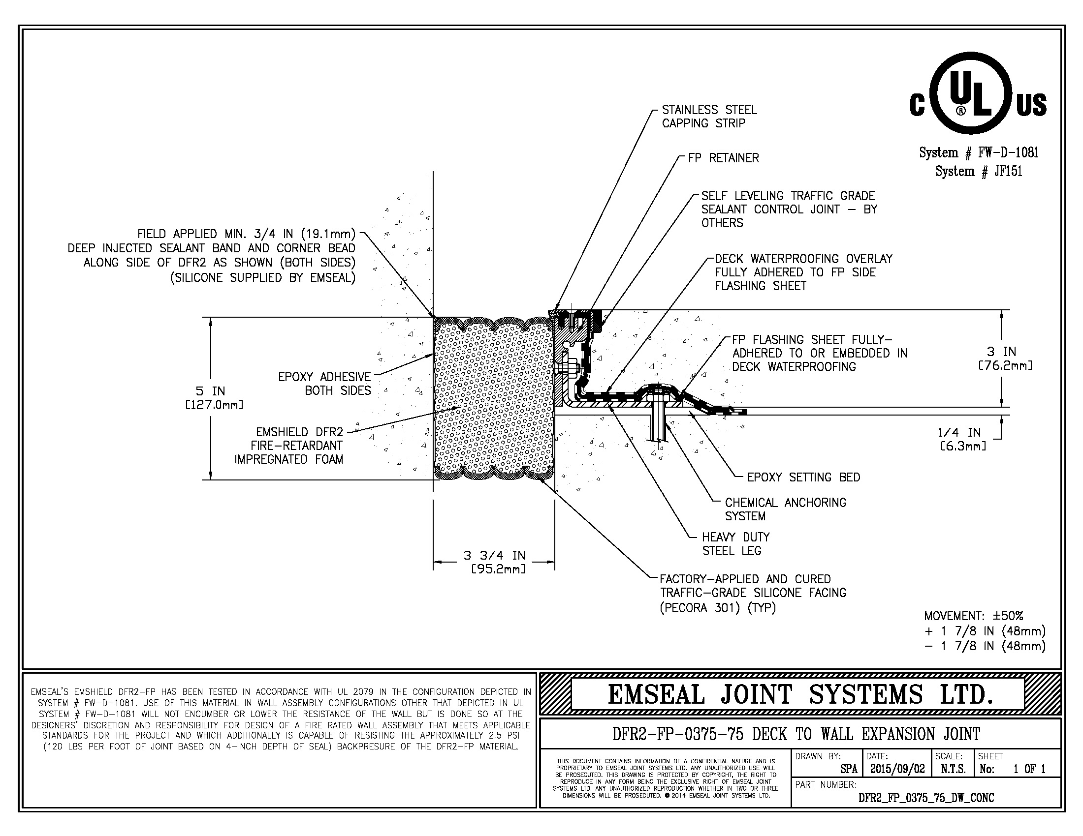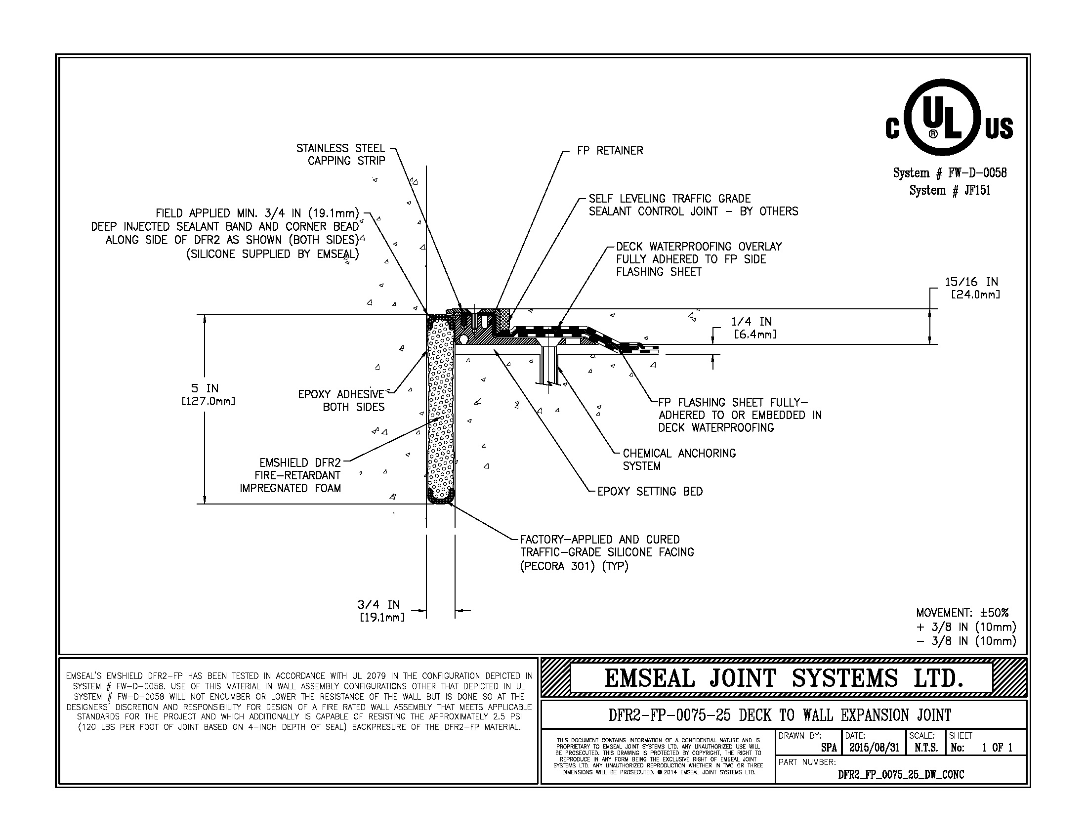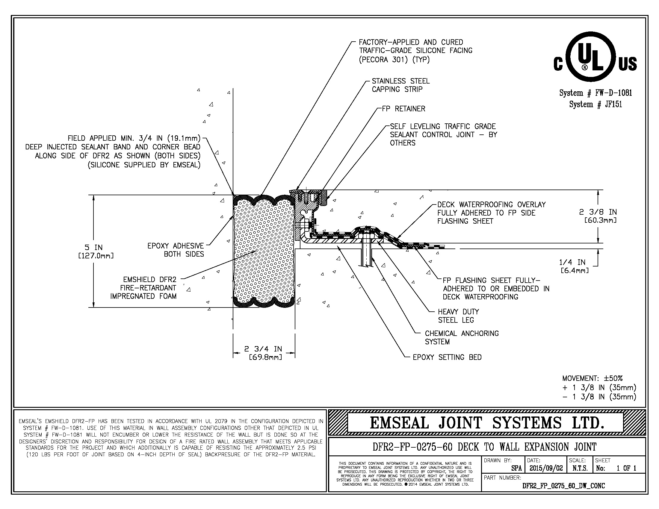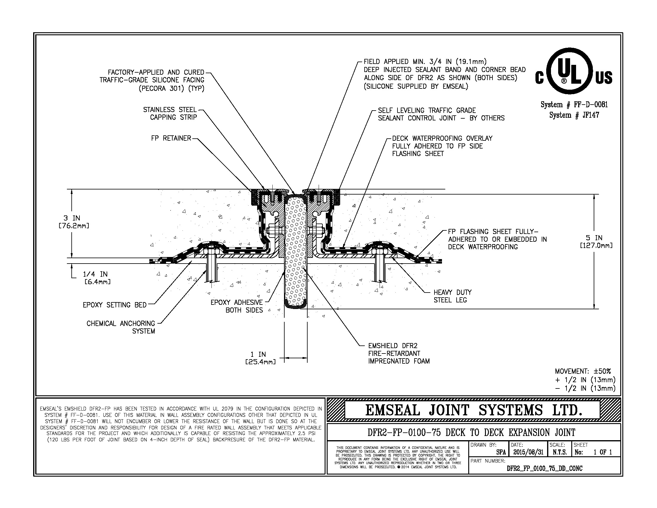 These drawings are intended for use during the specification of EMSEAL products in legitimate Architectural, Engineering and Construction applications. Any misuse or duplication of these copyrighted details for any other purpose, will be vigorously prosecuted.