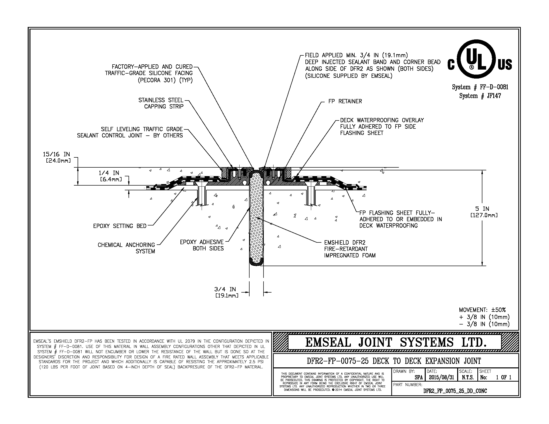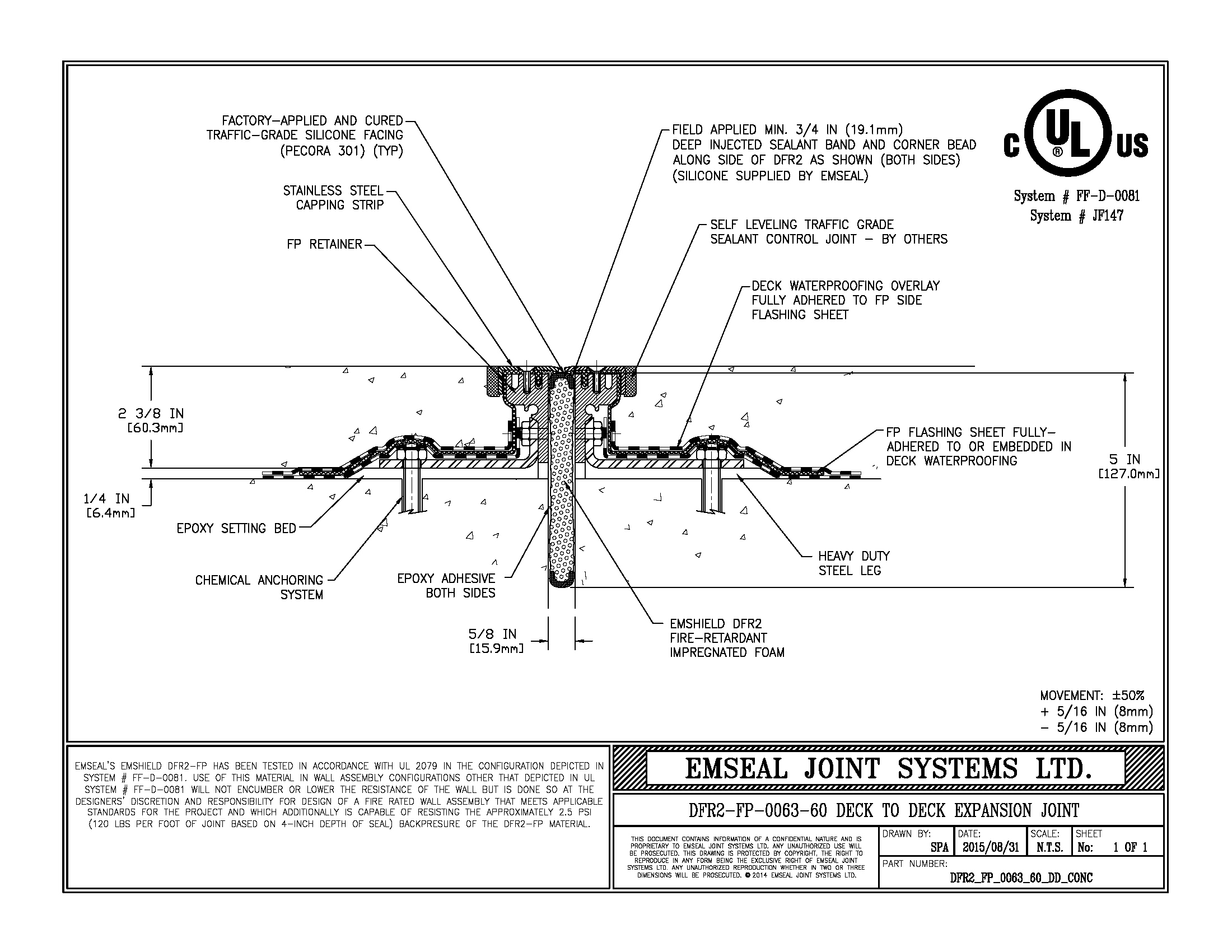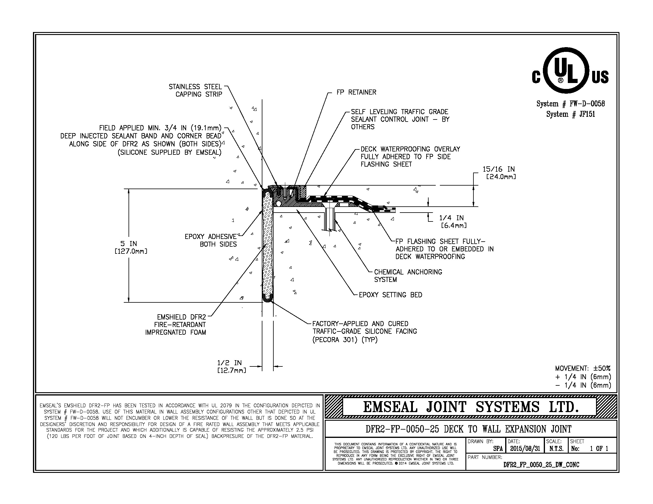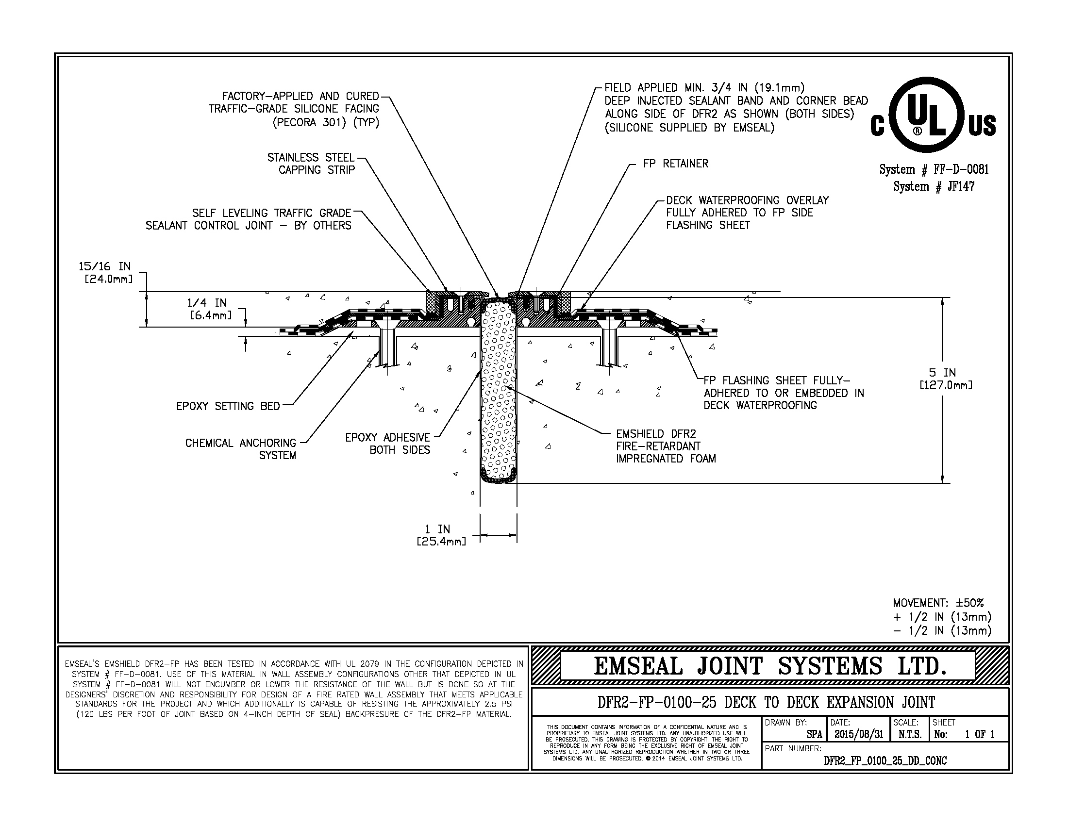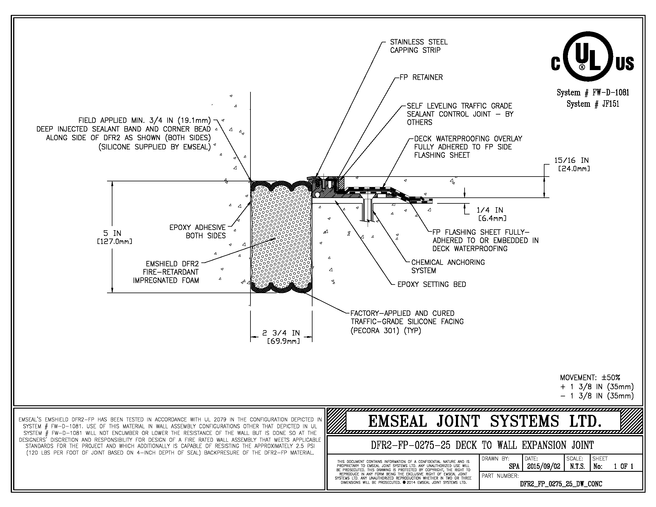 These drawings are intended for use during the specification of EMSEAL products in legitimate Architectural, Engineering and Construction applications. Any misuse or duplication of these copyrighted details for any other purpose, will be vigorously prosecuted.