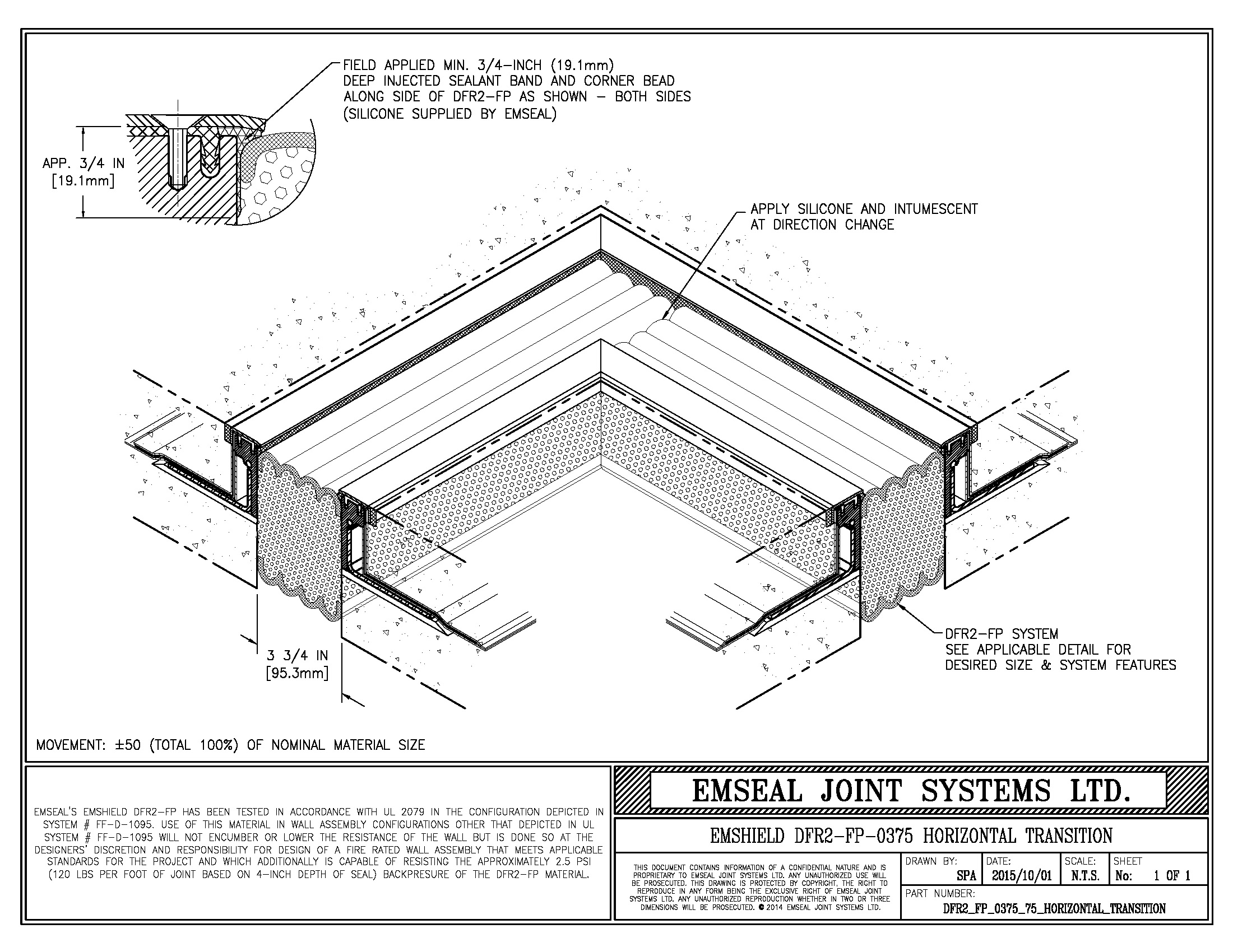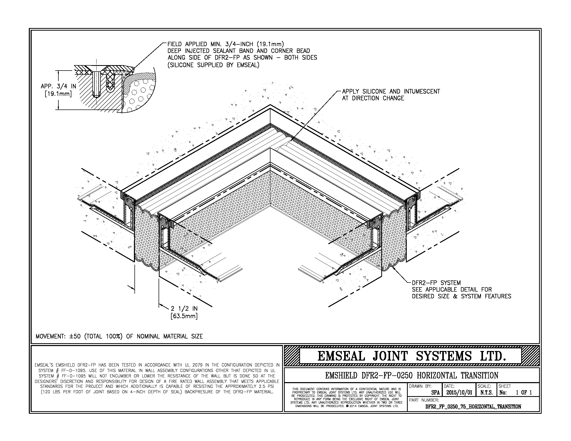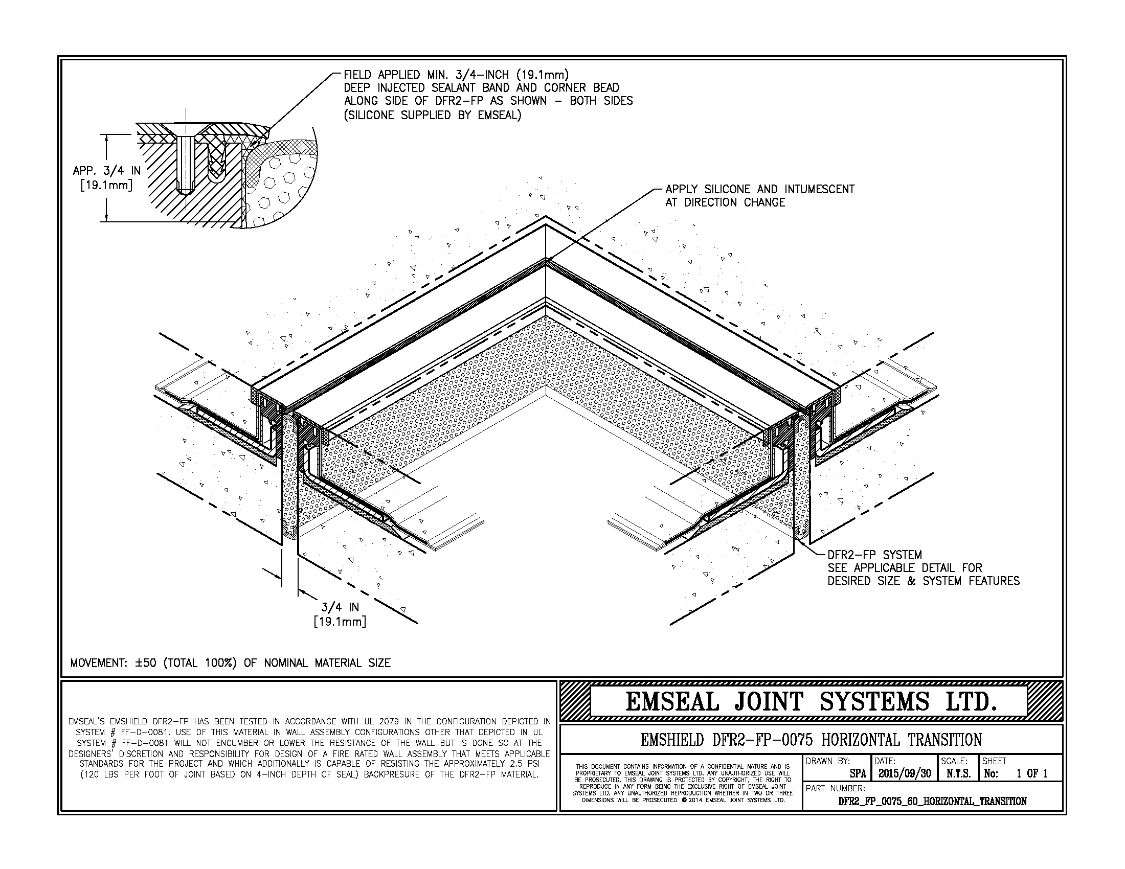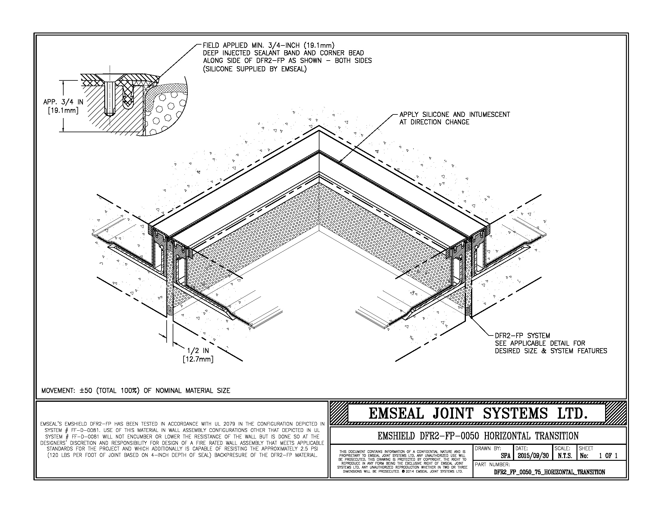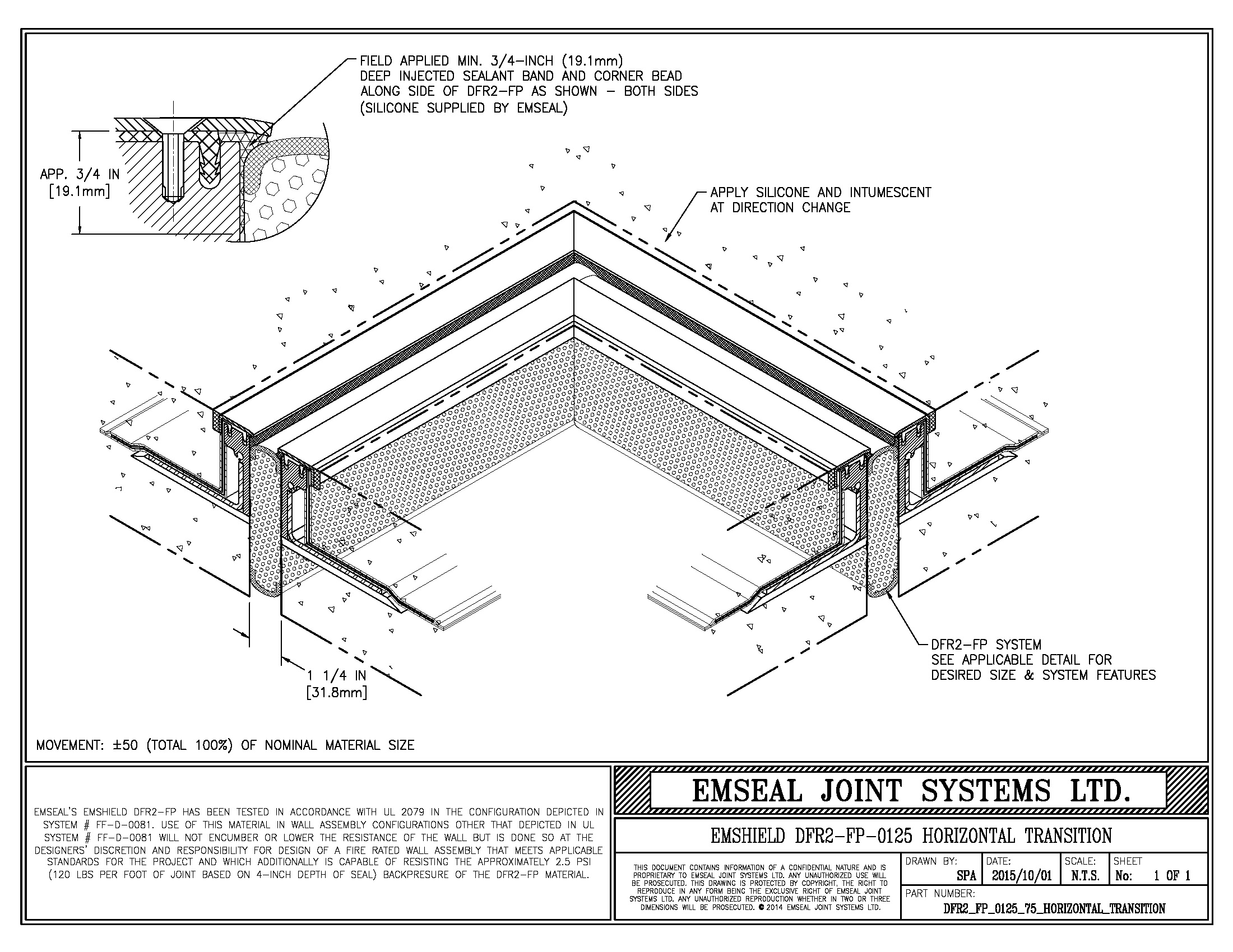 DFR-FP System 2-Hour Fire-Rated Filed Fabricated Horizontal Transition with 1 inch Leg Height 3 inch | 75mm