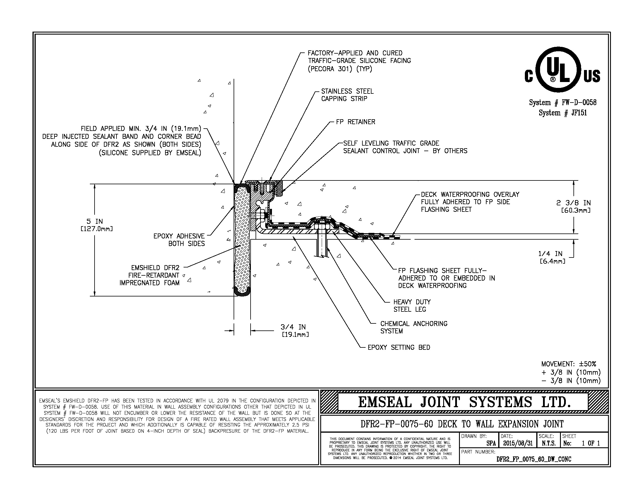 DFR-FP System 2-Hour Fire-Rated Deck-to-Wall Split Slab with 2 3/8 inch Leg Height 2 1/2 inch | 65mm