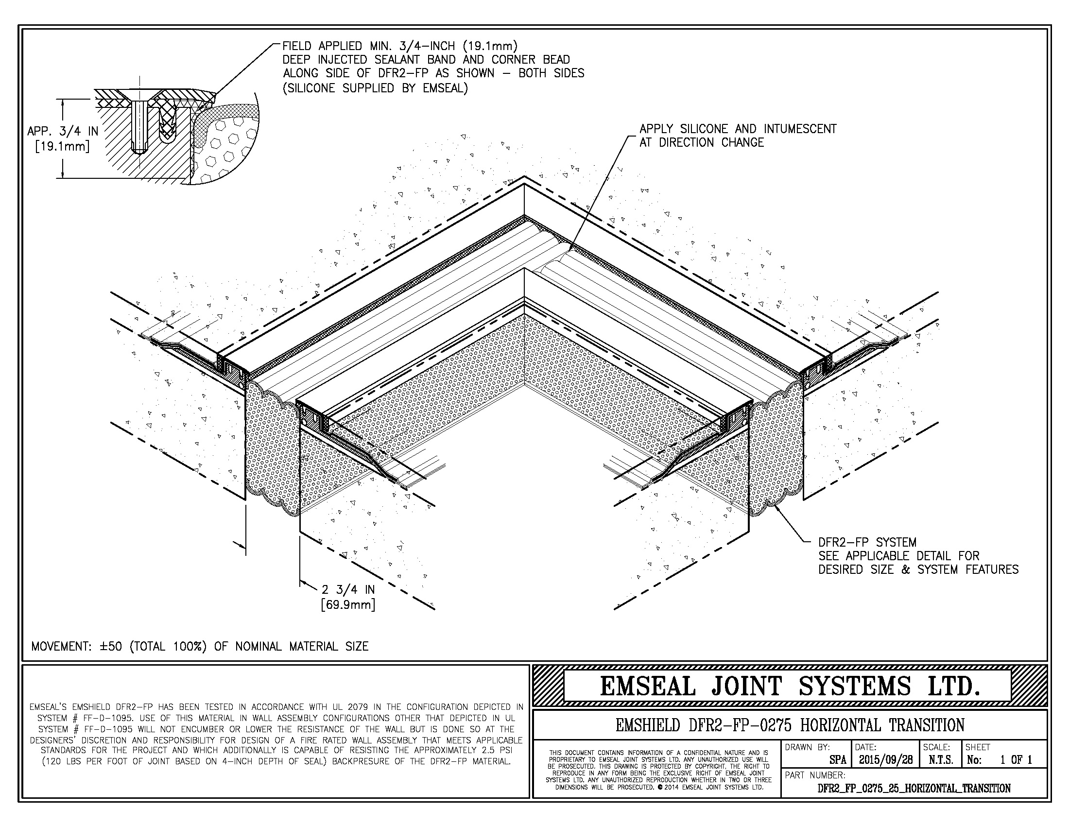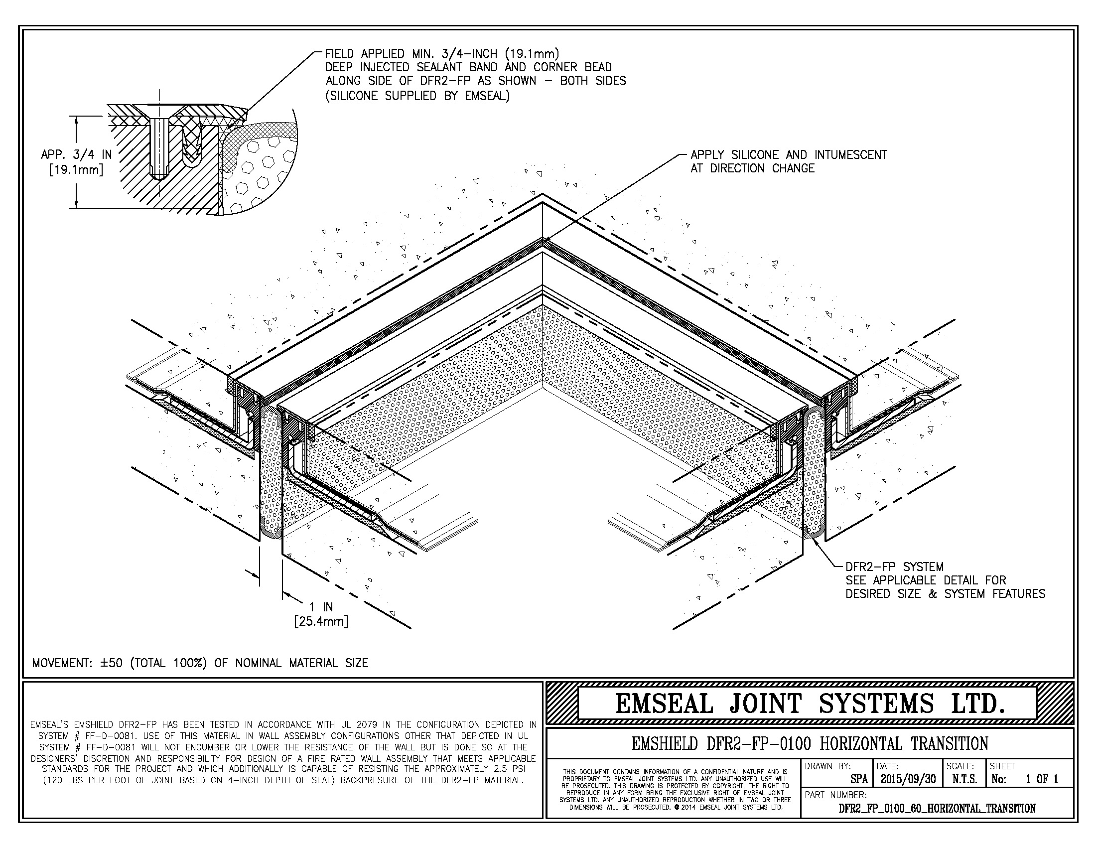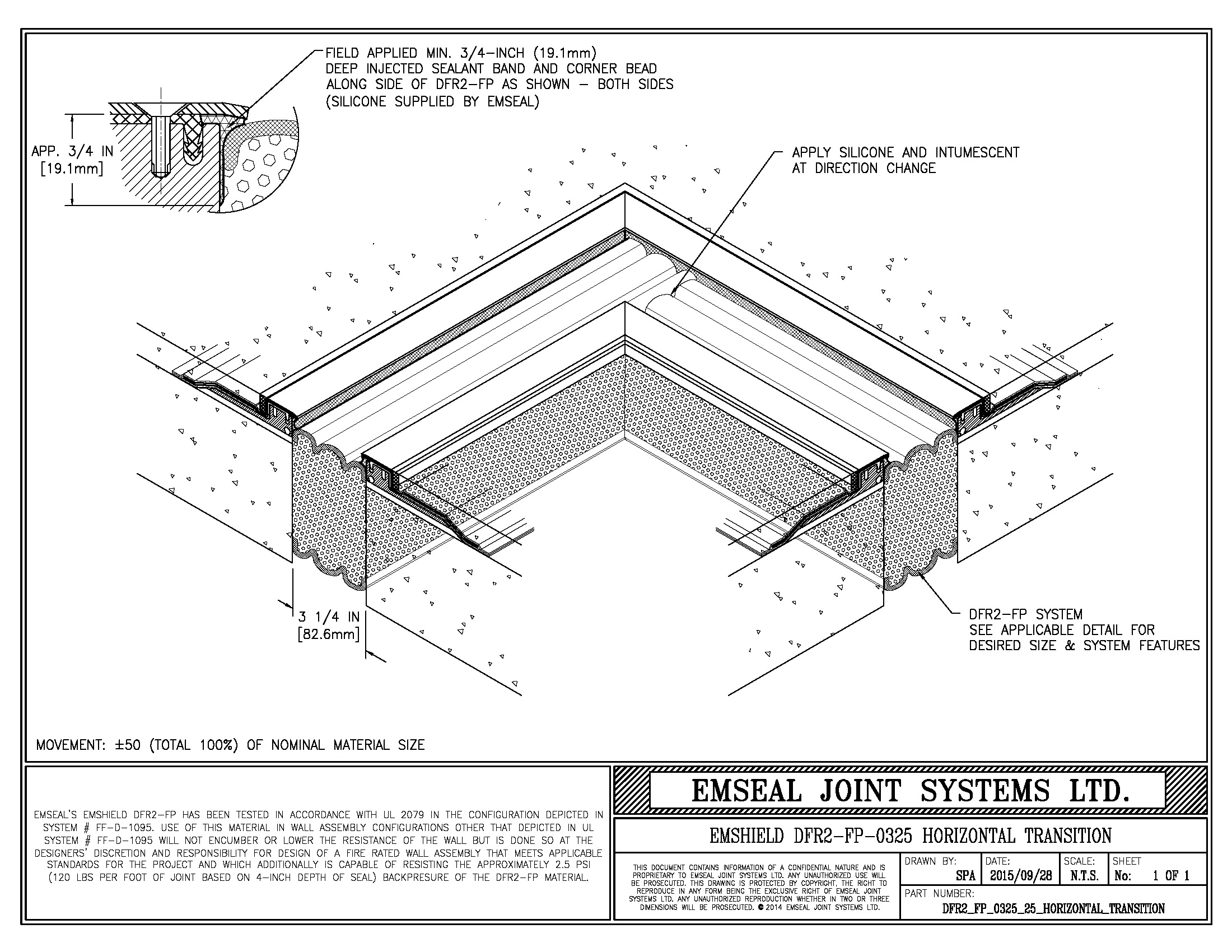 DFR-FP System 2-Hour Fire-Rated Filed Fabricated Horizontal Transition (Typical)