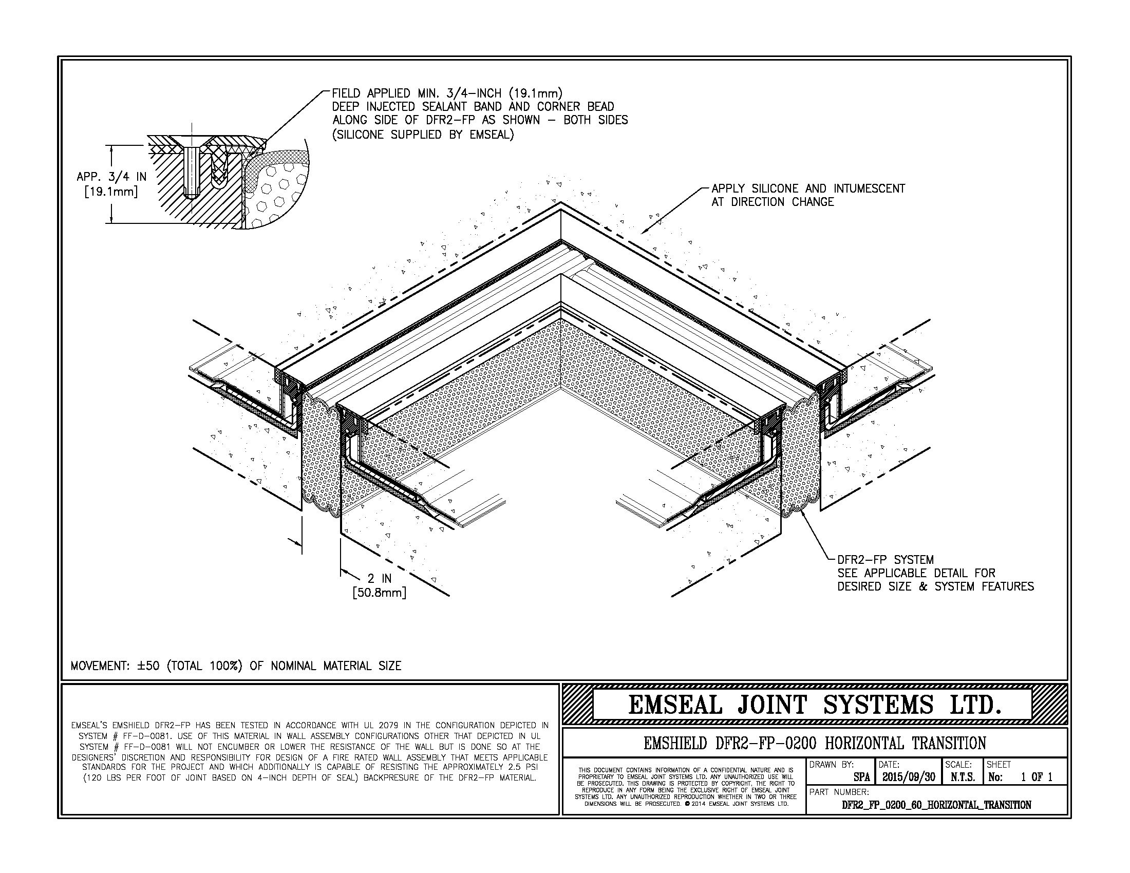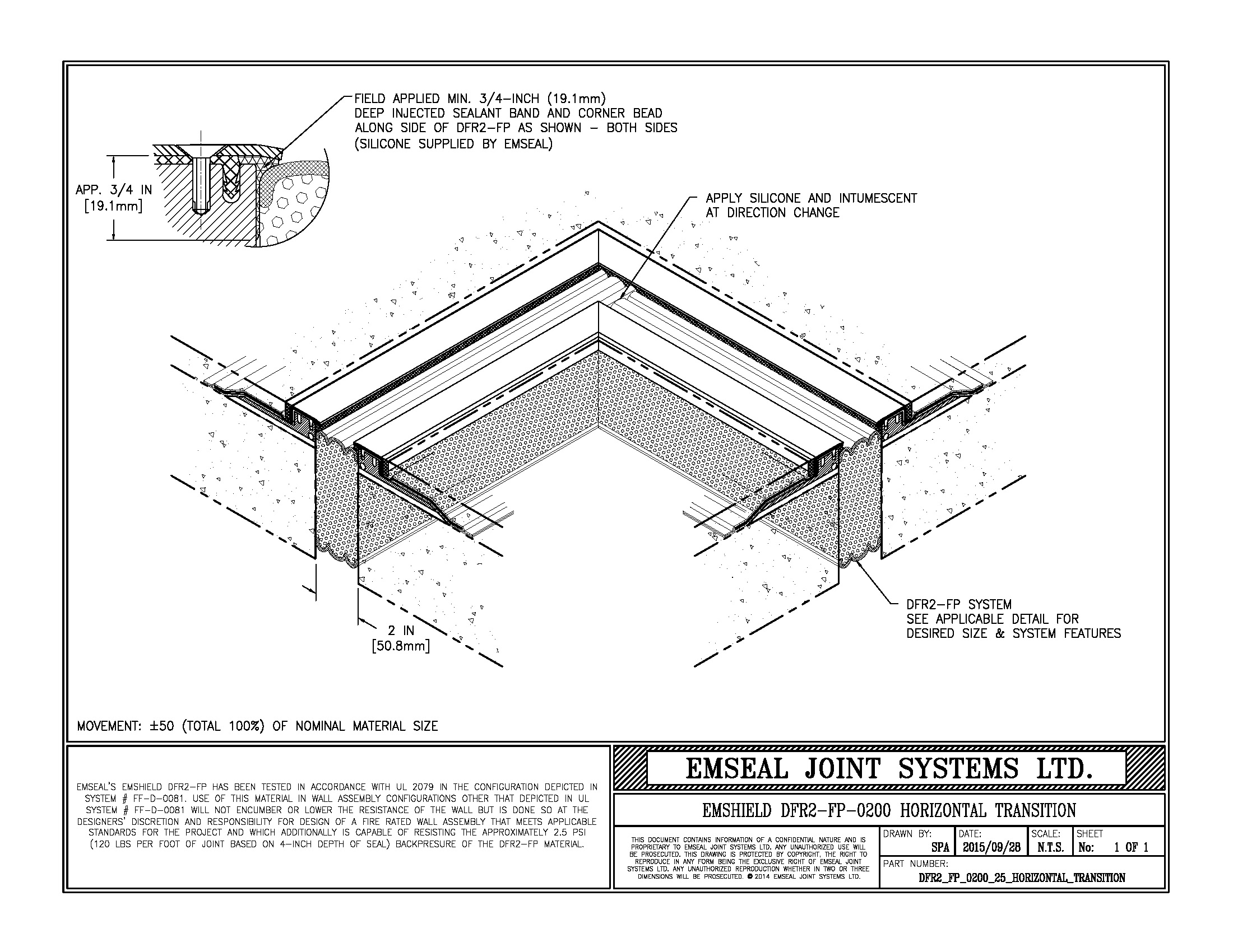 DFR-FP System 2-Hour Fire-Rated Filed Fabricated Horizontal Transition with 1 inch Leg Height 2 inch | 50mm