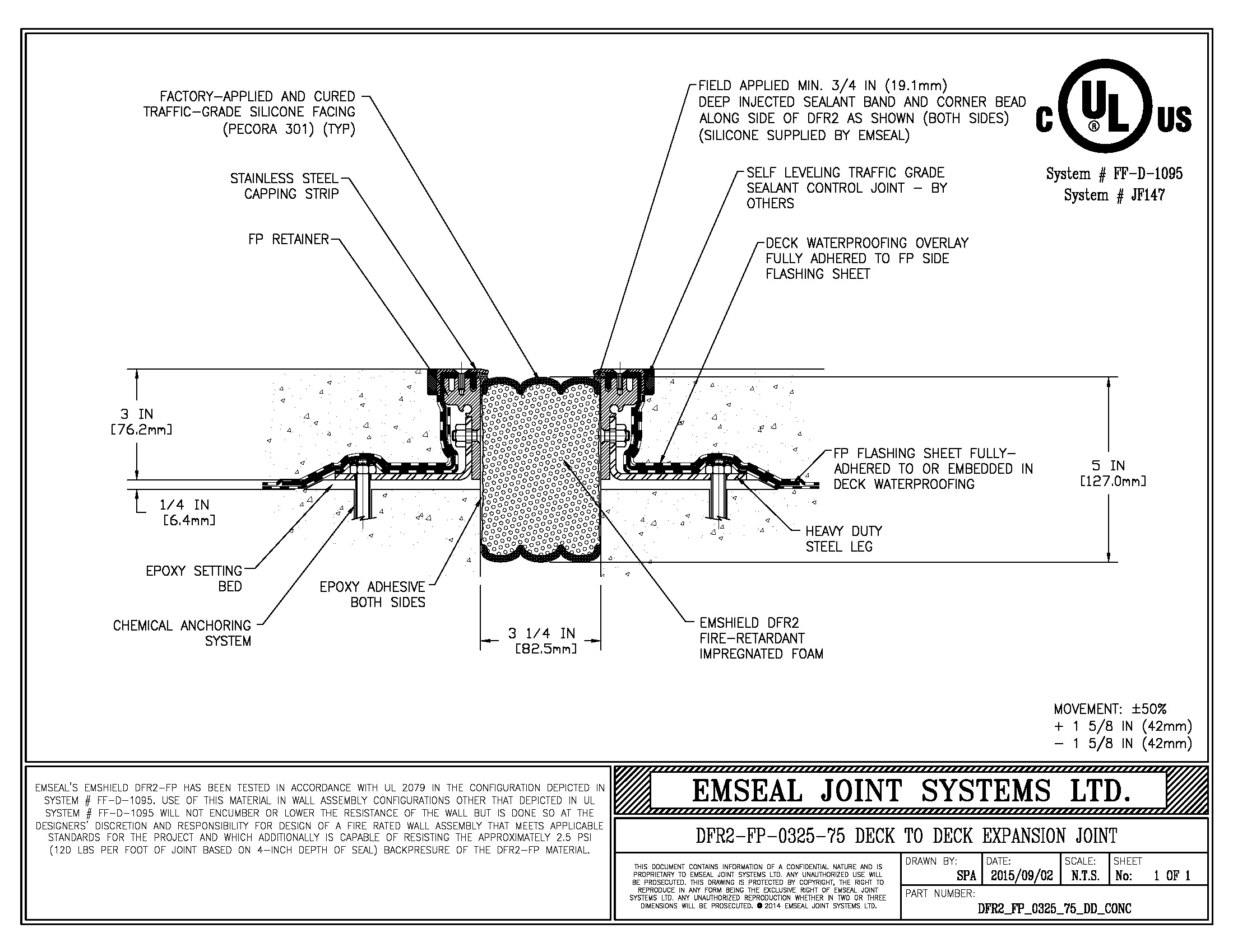 DFR-FP System 2-Hour Fire-Rated Deck-to-Deck Split Slab with 2 3/8 inch Leg Height 3 inch | 75mm